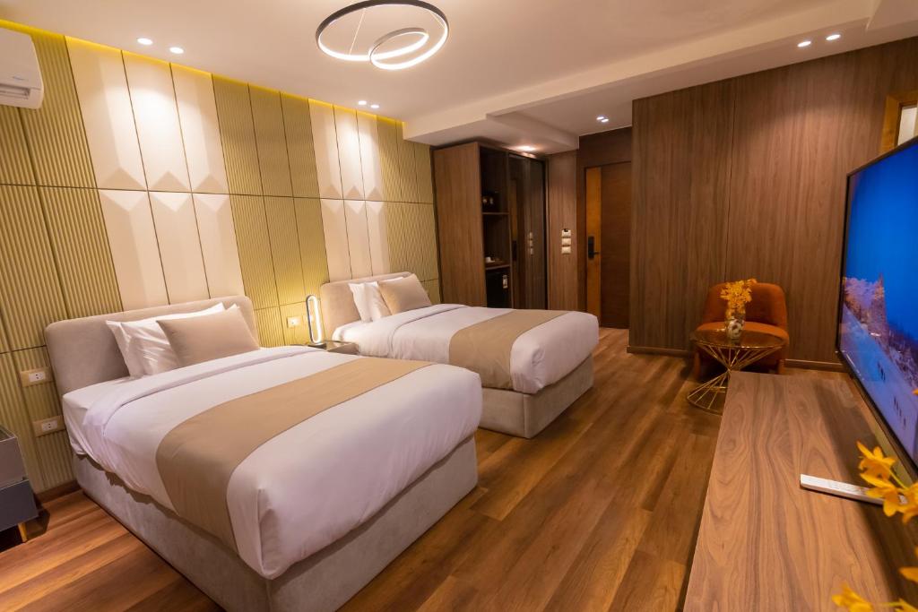 호텔은 기자시내에 위치해 있으며, 기자 피라미드에서 3.6km, 거대 스핑크스에서 4.2km, 카이로 타워에서 12km 거리에 있습니다. 현대적인 시설의 객실을 갖추고 있으며, 룸서비스, 컨시어지 서비스 등이 완비되어 있습니다. 숙소에는 24시간 프런트 데스크, 공항 교통편, 공용 라운지, 무료 Wi-Fi 등이 마련되어 있습니다. Spire West Hotel의 객실에는 에어컨, 옷장, 주전자, 미니바, 안전 금고, 평면 TV 등이 마련되어 있습니다.
