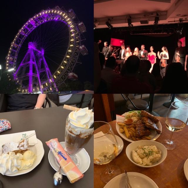 체스키서 CK 셔틀 타고 남 중앙역 근처 노보텔에서 묵었어요~ 조식은 그럭저럭 이였으나 중앙역 지하에 SPAR 라고 큰 마트 있어서 납작복숭아도 사고 스벅도 이용 했어요~지하철도 있고 부다페스트 기차도 다녀서 교통 짱~ 따로 인문학 투어 신청해서 갔는데 넘 좋았고 비엔나 립도 먹고 슈테판 대성당앞에서 음악회 표 사서 (꼭 프로그램 보고 구입 하세요~)관람도 하고 그 근처 스와로브스키 본사와 또 다른 지점이 두개가 있는데 귀걸이 득템!! 그리고 공연보고 대관람차 10시 반에 타고 왔어요~